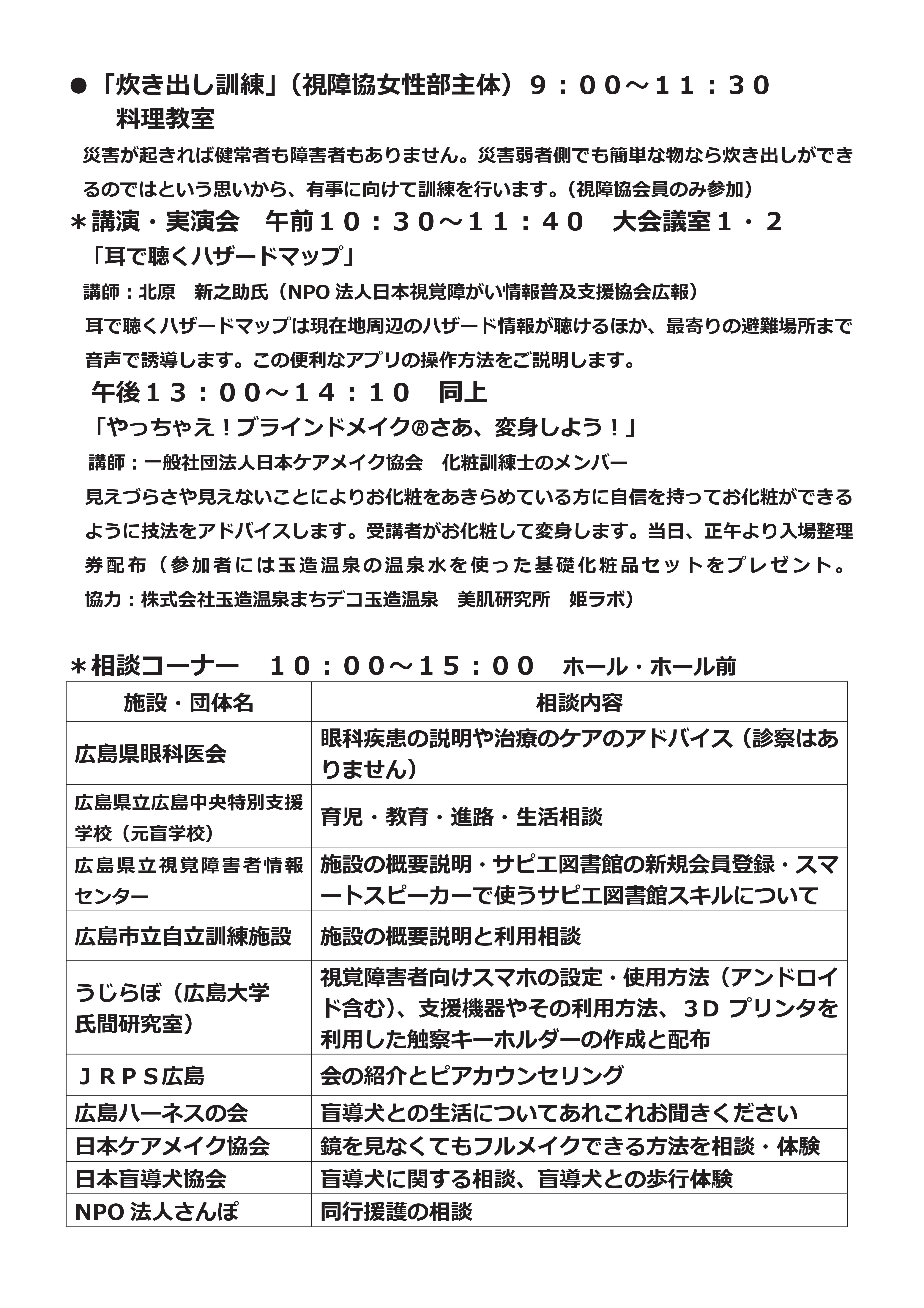 広島市視覚障害者情報センターまつり 2026」開催のご案内について情報提供がありました。